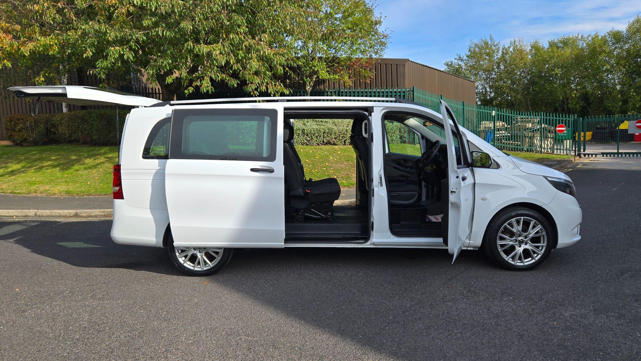 WE WELCOME TO THE STABLE THIS STUNNING MERCEDES VITO XLWB 2.1 , 8 SEAT TOURER FINISHED IN DIAMOND COLOUR KEYED WHITE