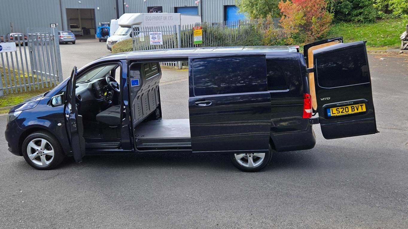 This 2020 Mercedes Benz Vito 114 CDI Premium RWD L3 presents an exceptional opportunity with its remarkably low mileage of just 34,589 miles. This Euro 6 compliant 2.1 litre diesel van offers a robust 134 bhp engine and comes with a 6 month warranty for your peace of mind. The Premium trim level ensures a well equipped driving experience, featuring the convenience of a reversing camera with rear parking assistance, and Active Parking Assist with front and rear sensors to make manoeuvring effortless. Stay connected and entertained with the Audio 15 system, complete with Bluetooth connectivity, while the automatic headlights and TEMPMATIC air conditioning provide added comfort and ease on every journey.